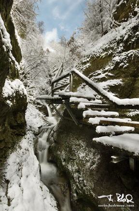 Ein herrlicher Weg führt etwa 6 Kilometer an völlig natürlichem Bodenseeufer entlang. Die Schlucht mit ihren vielen Treppen und Stegen wird in vielen Reiseführern als "wildromantisch" bezeichnet.